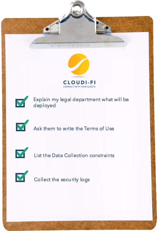 When the user will connect the Hotspot service via the captive portal, he has to read and accept the “Terms of use”. This document list the obligations and rights of both your company and the user himself. Because more and more countries have specific regulations in term of privacy, some of these terms may be separated in the “Privacy Notice”.