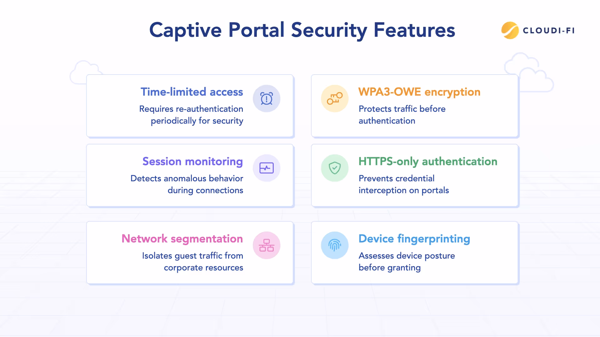 - HTTPS-only authentication portals preventing credential interception