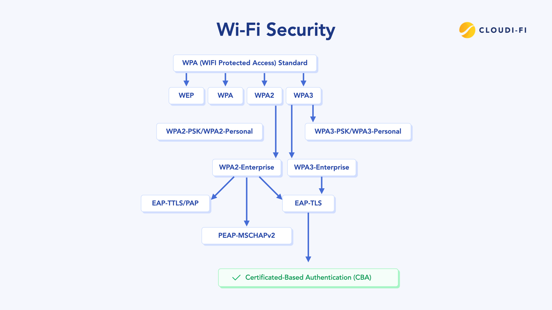 Deploying and maintaining the complexity of WPA2/3-Enterprise, especially the required PKI and RADIUS infrastructure, is often the greatest challenge. Cloudi-Fi simplifies these authoritative requirements by offering a unified, cloud-native platform.