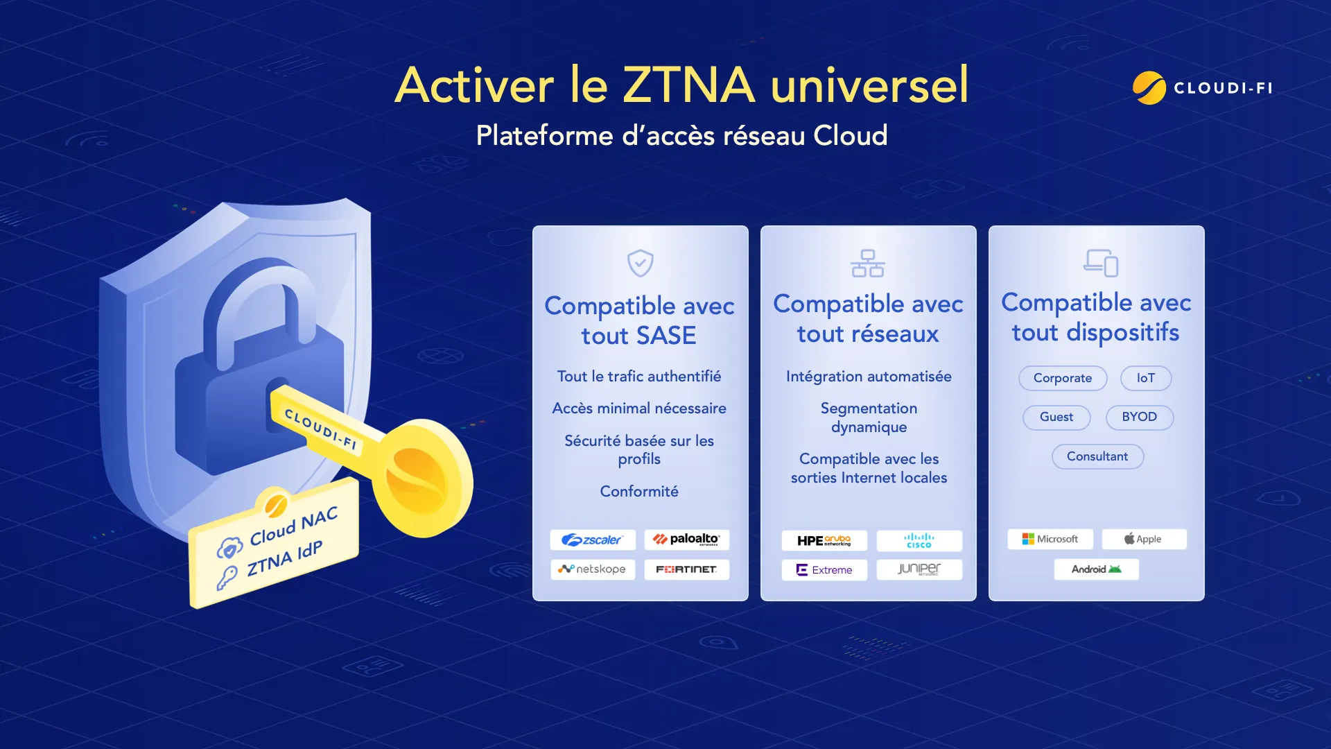 La plateforme Cloudi-Fi repose sur les principes du Zero Trust, rendant l’accès sécurisé universel, simple à déployer et facile à gérer.