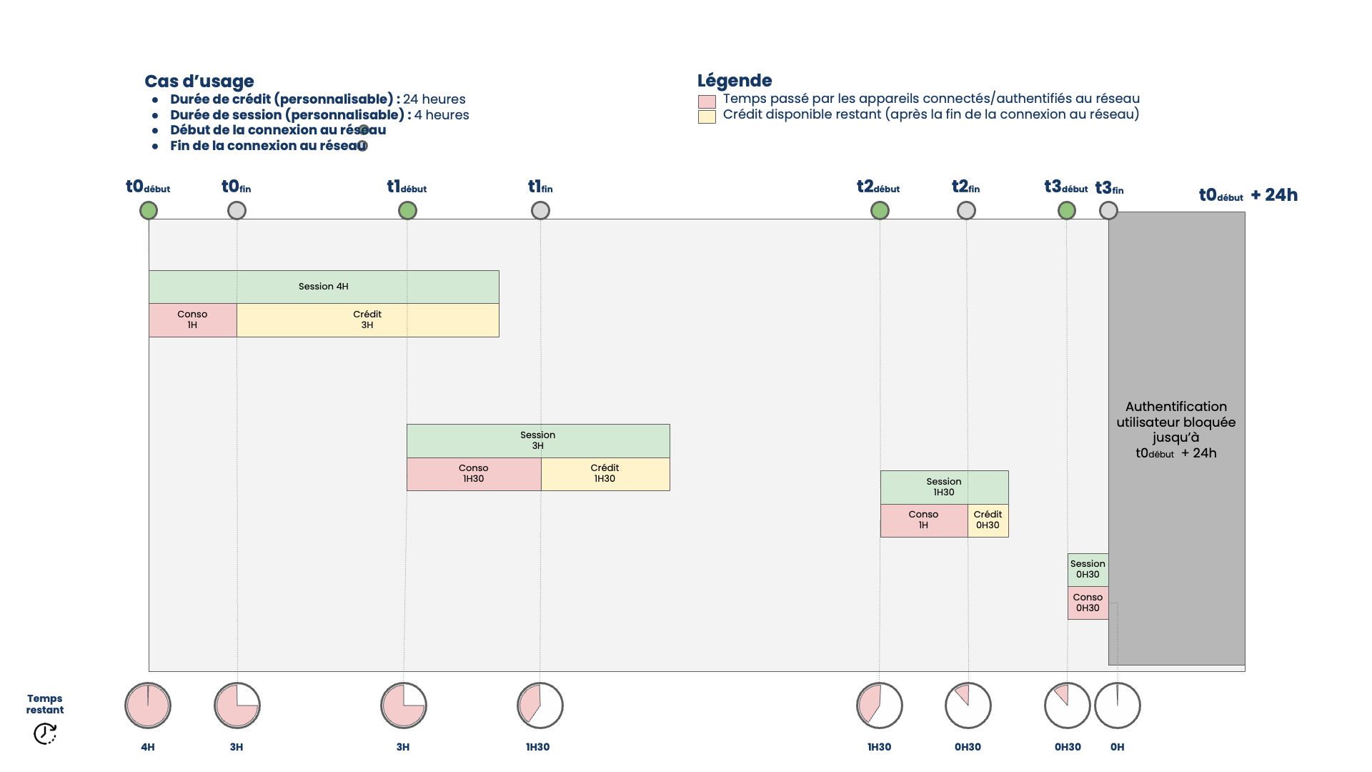 - Après 15 minutes de navigation, le système le déconnecte automatiquement, conservant 45 minutes pour plus tard.