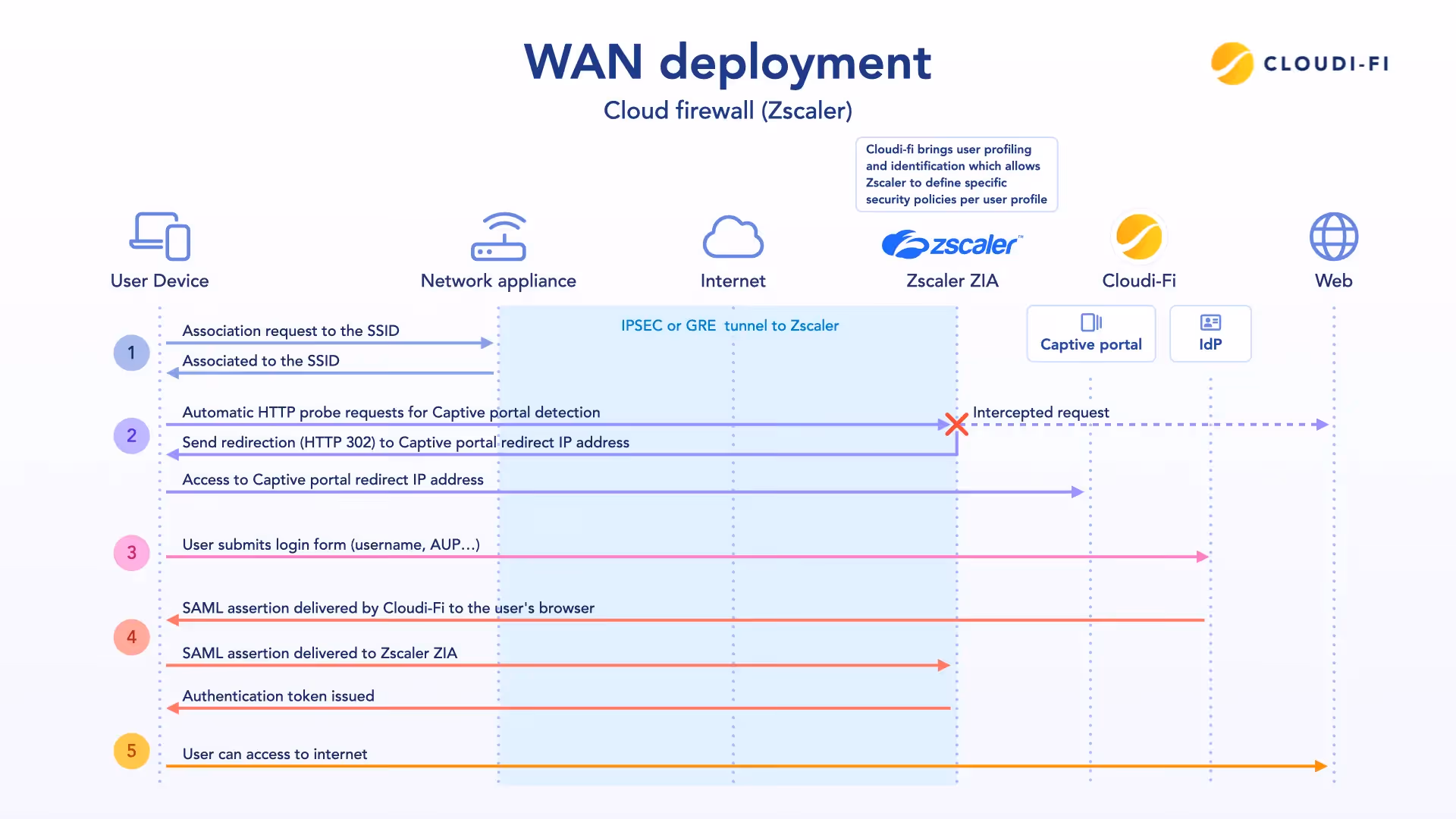 To achieve this, we integrated Cloudi-Fi's cloud-based captive portal with a dedicated Zscaler Internet Access (ZIA) infrastructure. This combination allowed us to authenticate and manage guest devices effectively, ensuring security, compliance, and a premium user experience.