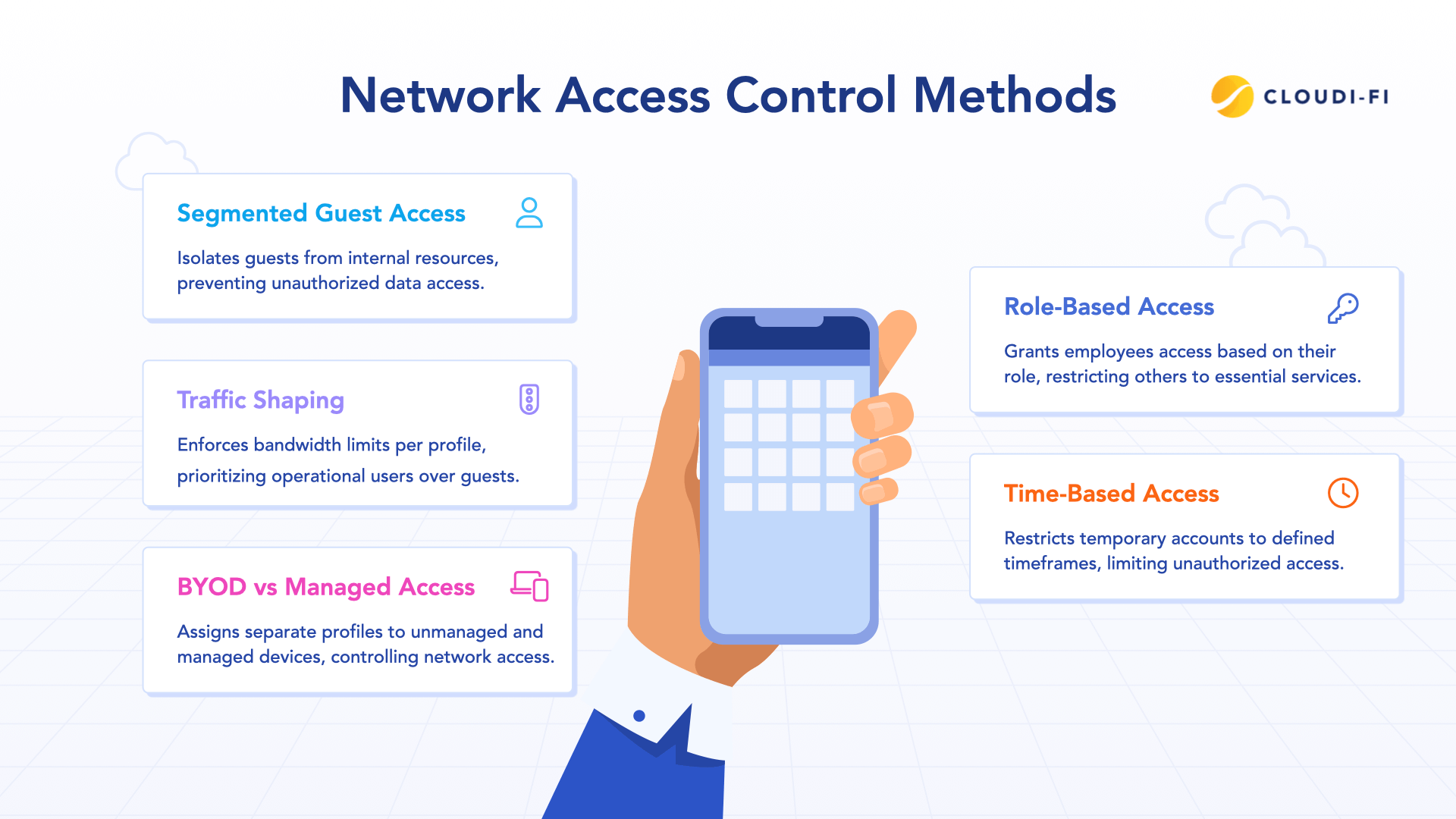 The FortiGate–Cloudi-Fi integration supports a wide range of practical access control scenarios: